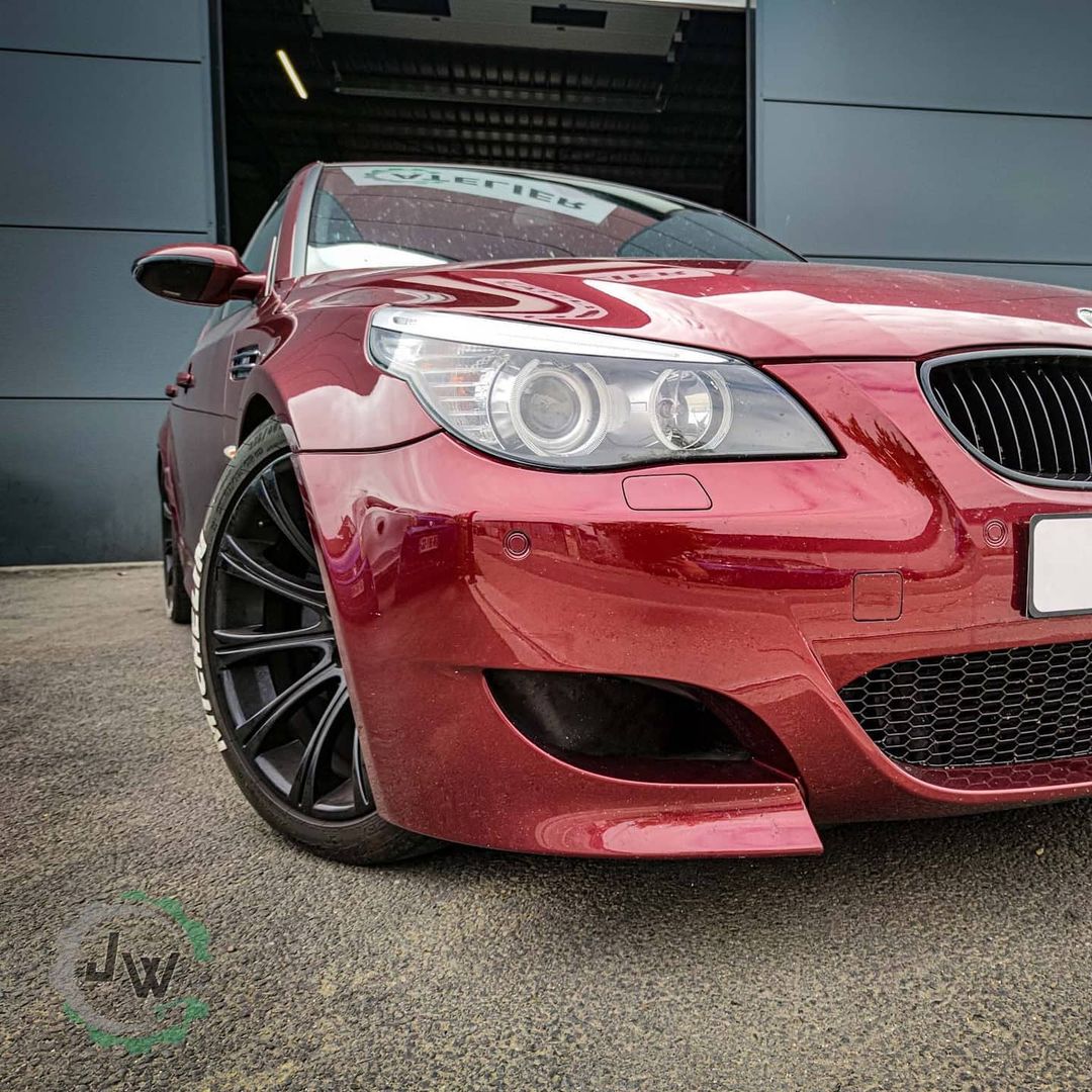 « Indianapolis Red » est le nom de cette couleur exclusive au catalogue BMW. De quoi marier le plaisir auditif du V10 au visuel très peu commun